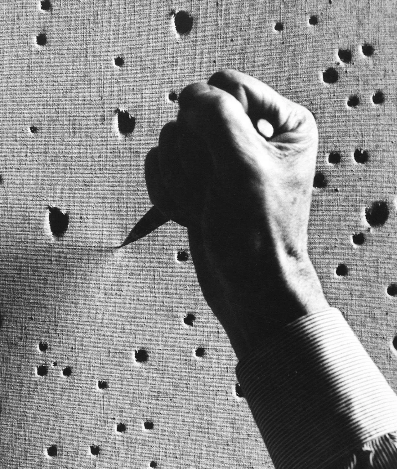 Lucio's pierced 'Buchi' (holes) offered a guided principle as a form of interaction; comprising these as to create a source of engagement with function to the works.